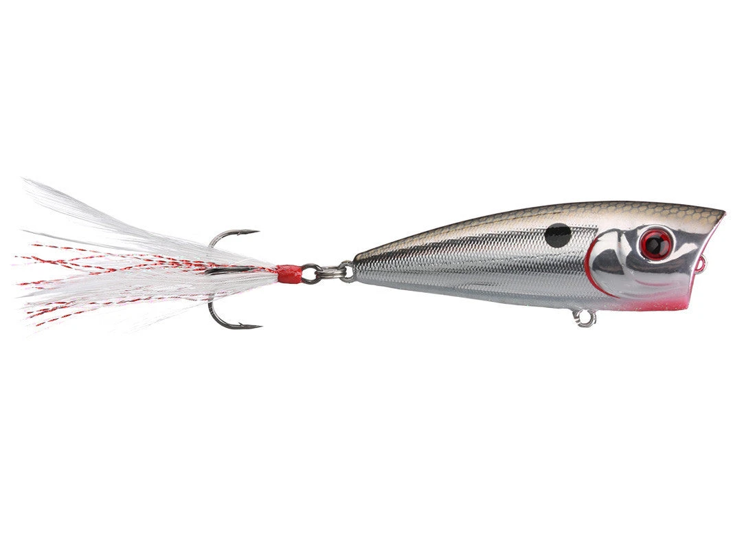 First, it’s concave, Easter egg shaped face of the Boss Pop maximizes the “spit” that sends water flying with every twitch. The depth of this cup/mouth is relatively shallow when compared to other chuggers/poppers, and makes walking the dog and skittering across the surface easy and productive.