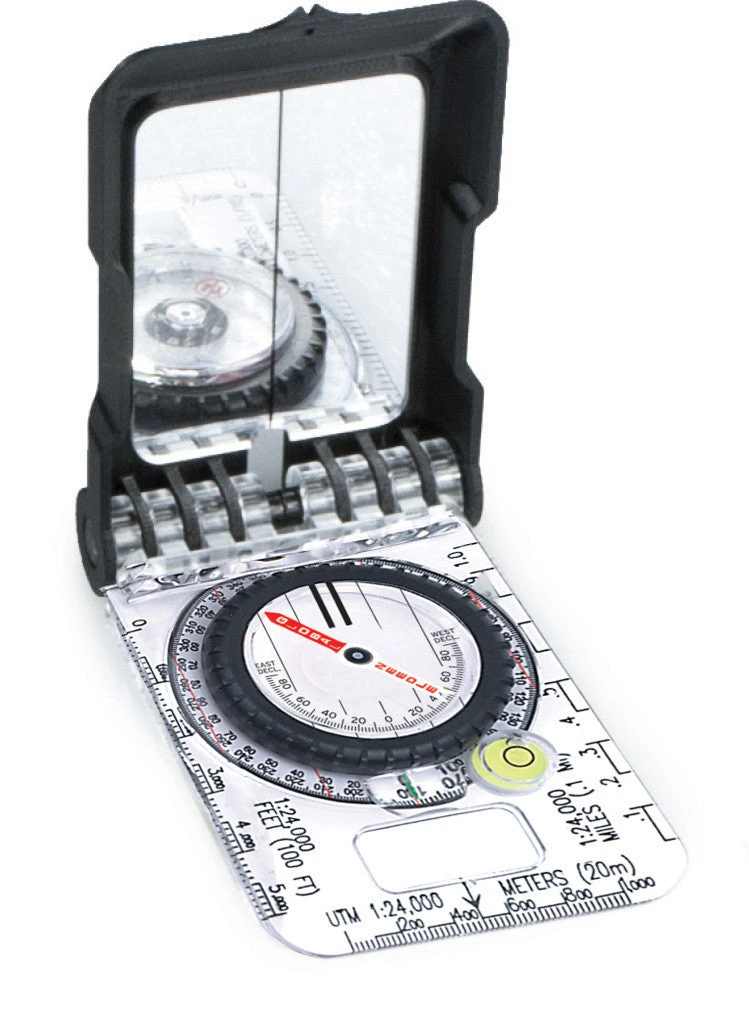 TruArcTM Global Needle; Ever-North Magnet; Map Magnifier; Sighting Mirror; Bubble Level; Clinometer; Magnified Readout; 1° Resolution.