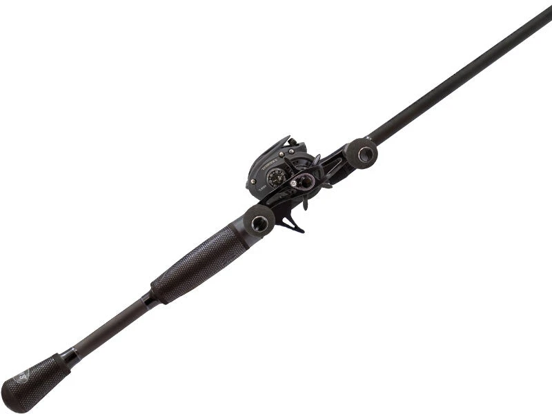 The Custom Black baitcast reel features a one-piece aluminum frame with graphite side plates, a premium 10-bearing system with stainless steel double shielded bearings, as well as high strength solid brass Speed Gears to provide smoothness and strength. The P2 Super Pinion Gear provides precise alignment and solid stability, for smoother operation and extended gear life. The reel also features a 95MM bowed aluminum handle with Winn® Dri-Tac knobs and the popular Speed Keeper® hook keeper keeps baits secure and at the ready at all times. The rod features a one-piece HM50 Tour Grade graphite blank with Nanotechnology which sports American Tackle Microwave guide with Nanolite inserts for less wind knots and longer casts. Just above the Winn® Dri-Tac split grip is the new Lew’s exclusive VTR System (Vibration Transfer Ring), which provides direct contact with the rod blank to transfer vibration directly to the angler’s hands.