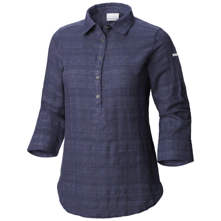 This effortless tunic brings on the charm with roll-up sleeves, a gracefully curved hem, and gentle gathers at the back.