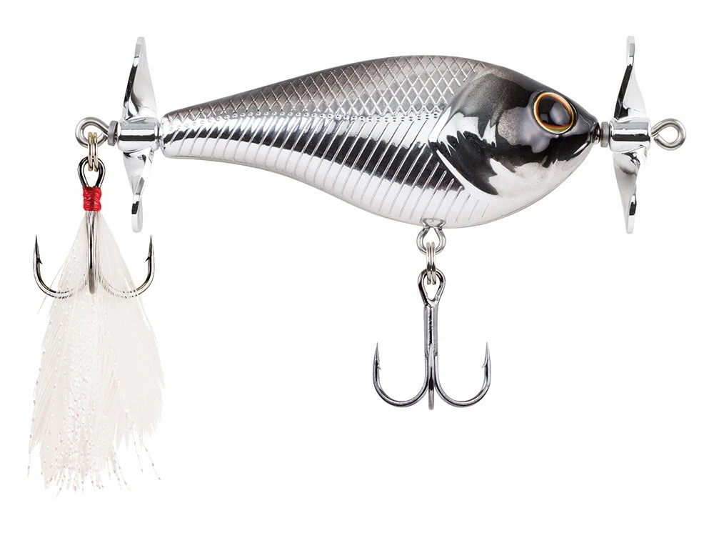 Berkley Spin Bomb Prop Bait is ideal for those situations when the bass are up shallow feeding on baitfish and bluegill. Built with a smaller baitfish inspired body shape, the Berkley Spin Bomb Prop Bait features two large cupped plastic propellers that don’t require any tuning and spray the maximum amount of water at any speed thanks to their enhanced surface area.