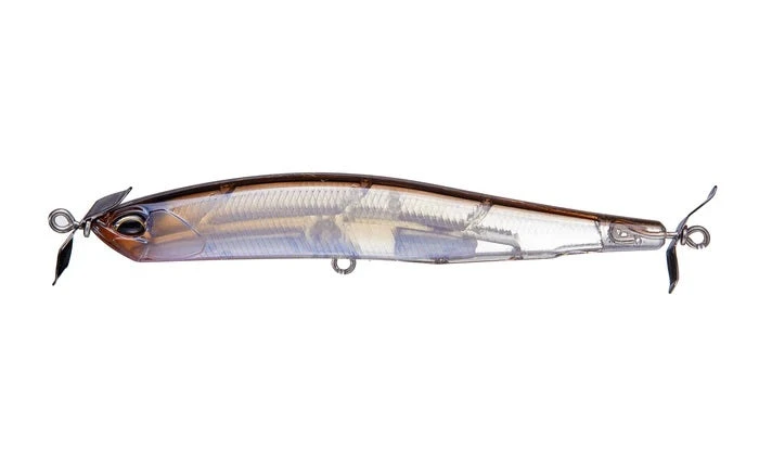 Built to with two smooth-running props, the Duo Realis Spinbait Spybait Series offers all the right attributes for light line finesse techniques, including the Japanese technique of “spybaiting.” The technique of “spybaiting” requires light line, a long-distance cast, and a sinking style bait that can be crawled back to the boat. It takes patience and refinement but is incredibly effective, especially in pressured fisheries. Sculpted with flat sides and a tall profile, the Duo Realis Spinbaits deliver more flash than ever before, while still maintaining the signature rolling action that makes them so effective for spybaiting.Â
