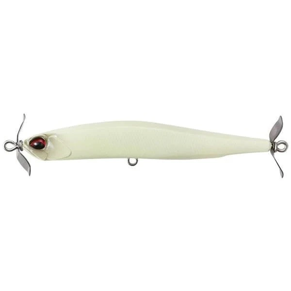 The Duo Realis Spinbait 80 spybait’s origin is rumored to have occurred around Lake Biwa 2007/ 2008. Others mention its popularity near Tokyo, Chiba and Yokahama where there are many small bodies of water. At that time versions of using a lure with propellers took on names like “pro-bait” and “screw-bait or Bi-hadou (also known as micro-wave)”. However, during that time anglers were attaching propellers to many lures: swimbaits, jerkbait-bodied lures, even jig-heads, in fact, using a propeller became so popular that anglers were purchasing just propellers to attached to in front of their lures.