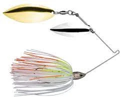 The Strike King Tour Grade Double Willow Spinnerbait is the newest member of Strike King’s wire bass fishing spinnerbaits. It uses a brand new super-sleek head design that cuts through water and vegetative cover like a knife while simultaneously keeping the lure balanced and running true. The head design also features 3D eyes and molded gill plates for added realism.