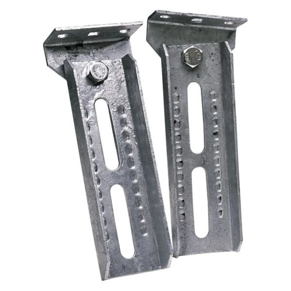 12″ L Swivel Bracket Assembly, 2 Pieces by Tie Down Engineering. Designed to support bunk boards. Slotted for vertical adjustment and feature non-slip dimples to avoid movement and increase load capacity. Hot dip galvanized for lasting protection. Packaging available in pairs including swivel brackets, bolts and nyloc nuts.