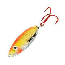 The Buck-Shot Rattle Spoon is deadly year-round for vertical jigging perch, walleye, trout, bass and pike. Jig aggressively in a lift-fall manner to call fish from a wide radius and make them strike. Tip with a minnow head, waxworms or IMPULSE Minnow Head and Perch Eye