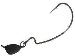 The pivot Head was designed to be used on swim baits. They can be fished individually or in multiples on umbrella rigs. The combination of the “bean” shaped head and the split ring joint between the head and hook allow for an erratic swim pattern that drives fish crazy. The weedless version is designed to be Texas rigged with the hook point riding on the top of a bait. The heads come in a black matte finish and the hooks are black chrome.