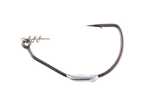 The weighted version not only helps sink or “swim” a rigged bait down into the strike zone, but helps to increase casting distance. The weight is positioned low on the shank to provide a keel” effect so that baits rigged weedless-style will swim naturally (as opposed to rolling or flipping when weights are inserted inside soft baits). The weighted version is ideal for Swimming Senkos, swimbaits, flukes and other small profile plastics. With Owner’s unique “Centering-Pin Spring” (CPS – patent pending) attached to the hook eye, baits can be “permanently” secured by inserting the pin in the center of the nose of a soft plastic, which can then be screwed onto the TwistLOCK coil spring so that any bait will rig perfectly everytime! The “Open” gap allows for more positive hook sets. Features include a 30° eye-bend, an X-strong forged shank, Super Needle Point, and black Chrome finish.