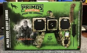 The Alpha Dogg® Electric Game Caller Combo from Primos comes with a Sit’N Spinâ„¢ Crazy Critter® decoy that mimics a wounded rodent or bird with erratic movements and a 360° spinning motion. A speed dial adjusts the Critter from superfast to barely moving. The Alpha Dogg Electric Game Caller is the apex of predator calling technology, using a No Distortion speaker system with 2 adjustable cone speakers that cover 180 degrees and 1 forward-facing horn speaker. A hand-held remote controls the caller and the decoy from as far as 200 yards. The sound list (organized by species) is displayed on the remote’s 2.5” high-res LCD screen. The unit includes 75 sounds, and 6 complete Expert Hunts which allow you to have Team Primos members actually call for you. The 2GB internal memory stores up to 1,000 sounds. The Alpha Dogg Electric Game Caller Combo requires 8 AA for the caller unit, 3 AA batteries for the remote, and 4 AA batteries for the decoy (batteries not included).