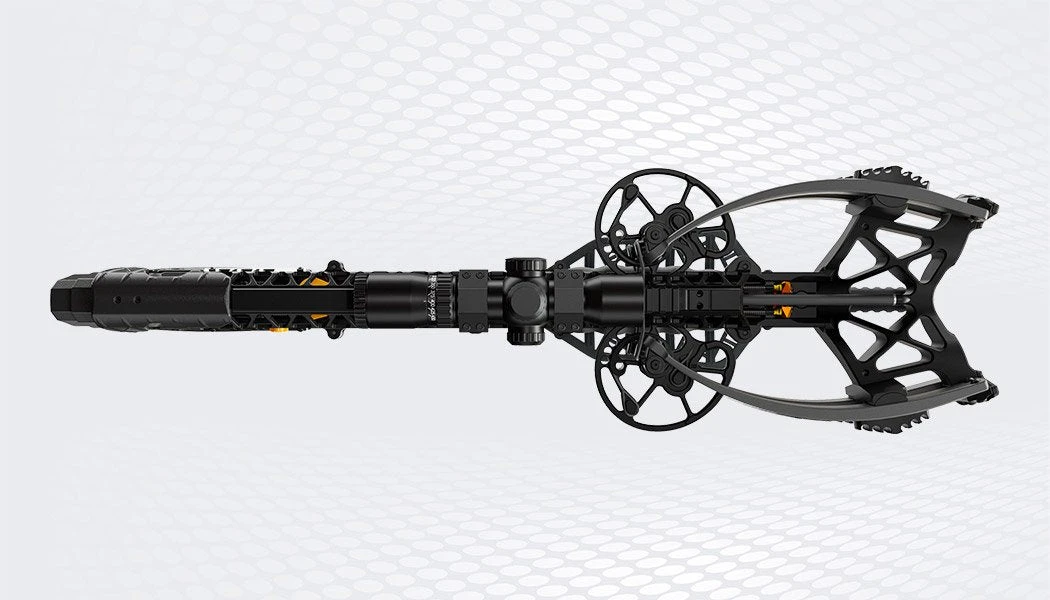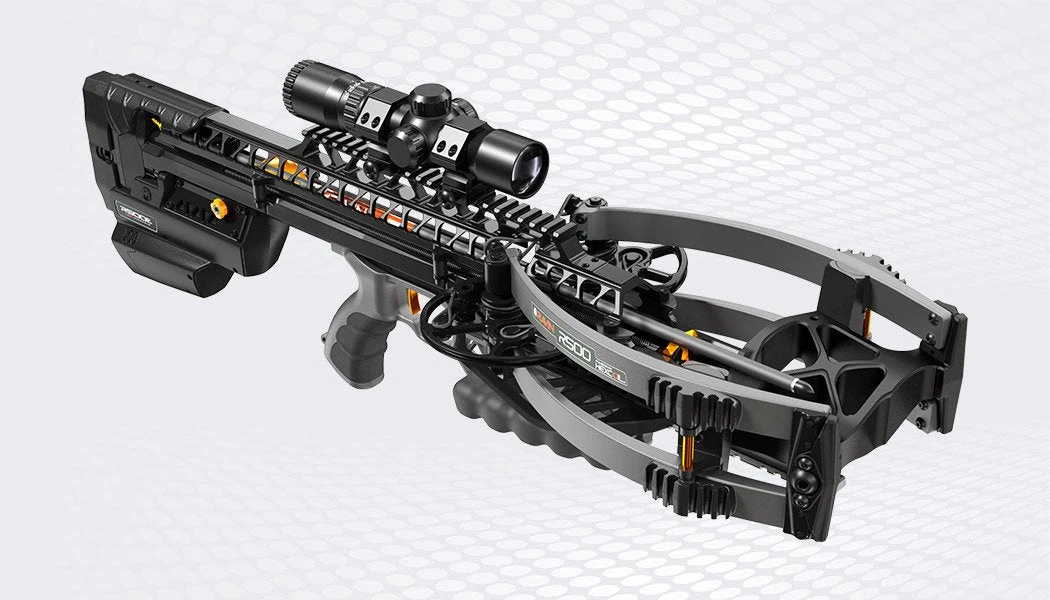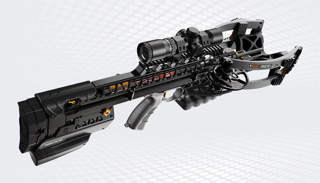Ravin is shattering industry standards once again with the new R500E. Featuring the new proprietary HexCoil Cam System, the R500E is able to produce staggering speeds of 500 feet per second with a 400 grain arrow, and has an axle-to-axle width of 3.6 inches when cocked and 7.6 inches when uncocked. Along with unmatched speed and dimensions, the R500E has the new Ravin Electric Drive System, that allows users to simply press a button to cock and decock this crossbow, with the option to manually cock the crossbow with the included R500 Draw Handle.The Ravin Electric Drive consists of a 12-volt battery and motor unit that simply attach and detach to the stock. Both the battery and the motor unit can be easily detached for storage or to recharge on the charging dock. The R500E also utilizes our new VersaDrive Cocking system, which consists of a dual screw drive that moves the Trac Trigger Firing System (TTFS) back and forth. The internal clutch within the VersaDrive System eliminates over-cocking and allows cocking or decocking to be stopped at any time during the process. The R500E comes in Slate Gray and will be available Spring 2021.