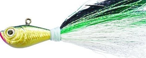 The Prime Bucktail Jig is not like any other jig on the market. The unique shape of the head and placement of the eyelet help bring this lure to life. With bulging eyes, holographic finish, and blazing color, it puts fish at your mercy.