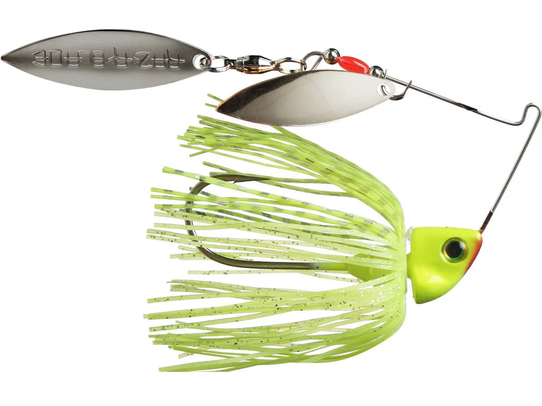 Strike Baby Burner Spinnerbait is a premium, down-sized spinnerbait weighing only 1/4-ounce. Built for speed, it’s equipped with smaller versions of the Strike King RAZ-R-BLADE high RPM blades. These thin cut willow blades are designed to spin fast and cause less drag than traditional willow blades, and they also help keep the bait from rising to the surface while increasing flash. The shape of the Baby Burner’s head also features extra weight on the hook shank to reduce drag and keep the bait running true, while a super sharp Gamakatsu hook seals the deal. Â