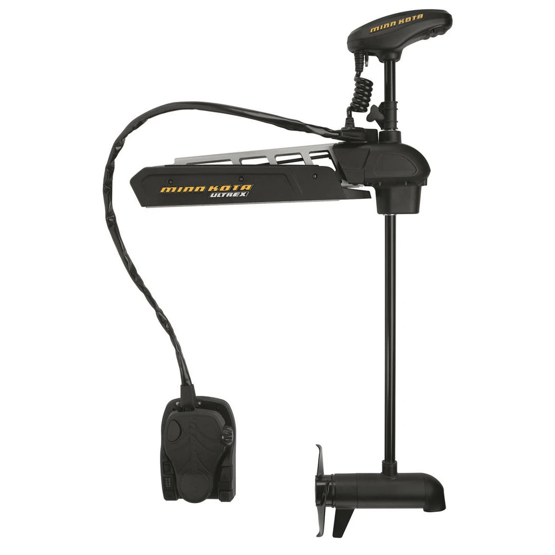 You no longer need to choose between rugged, instant responsiveness and technology-ridden trolling motors with Minn Kota’s Ultrex Bow-Mount Trolling Motor. i-Pilot uses GPS to remember fishing spots and control speed, steering, cruise control and Advanced AutoPilot. iTrack Record, Playback and Backtrack allow you to create, store and retrace productive paths along contour lines. Co-Pilot™ allows wireless control of speed and steering. Cruise control locks in your speed down to 0.1 mph increments. Remote and smartphone apps work via Bluetooth® technology. Using the instant-response cable-driven system you’re used to on the Fortrex®, the Ultrex boasts power-assisted steering, cutting down on fatigue and saving your energy. Minn Kota refined their Spot-Lock technology for tighter tolerance, keeping you on top of the fish. When you lift your foot off the pedal, steering lock holds the motor’s heading, reguardless of wind or current. The Ultrex’s foot pedal boasts controls for Auto Pilot and Spot-Lock. Its single-hinge mono-arm has fewer moving parts than traditional mounts for peerless reliability that meets the demands of tournament anglers. Its marine-grade anodized-aluminum arm is engineered to tighter tolerances for professional-grade strength, resulting in 75% less torsion deflection and less overall weight. The counter-tension stability system eliminates motor play, reducing steering torque at high speeds in rough water, and provides rock-solid, vibration-free stowing. A nitrogen-gas-charged spring halves the strength needed to stow or deploy the arm. Bowguard 360™ lets you easily lift the motor and Bowguard off by removing a single cap screw for secure storage on the road or during winter. Includes power-saving Digital Maximizer™ technology with battery meter, and a nearly indestructible composite shaft. Available with Universal Sonar 2. Two-year warranty.