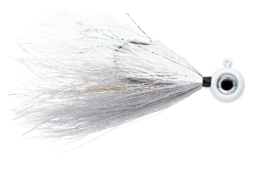 TechSet® technical locking curve maximizes hook sets and locks fish in place. Oversized flat aspirin head shape enhances darting and rolling head motion when jigged. Low profile elongated bucktail fibers maintain shape and creates life-like action. UV BRIGHT Finish reflects more light energy, strengthening the lure’s visibility.