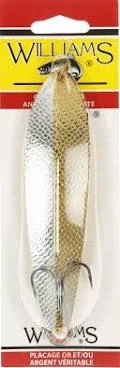 The Wabler, as are all Williams lures, is stamped from premium polished brass. A multi-step plating operation then applies the genuine silver and/or 24k gold finishes Williams lures are renown for. These are not standard silver and gold finishes either. The final step in the Williams plating process incorporates a further plated “electroclear” outer coat which is then baked on. This process does not dull the finish as a laquer would. It does render Williams silver and half & half finishes saltwater resistant and basically