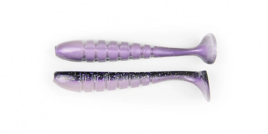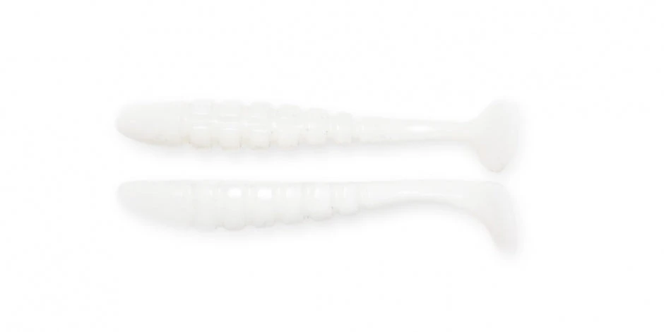 It has a specialized design with unique ribbed sides and a special three-dimensional paddle tail, providing a lifelike movement and vibration making the bait rock back and forth as it swims. Rig on a Swimbait head, Jig Head or belly weighted EWG Hook and slow roll deep structure or burn over shallow grass and over flats.