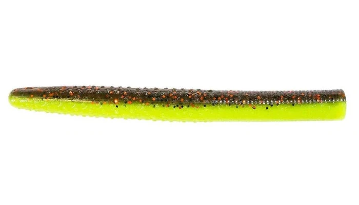 The Z-Man Big TRD is a 4 inch soft stickbait/worm specially and specifically designed for the increasingly popular Ned rig Midwest finesse technique. The Ned rig has been gaining momentum nationwide as a subtle and easy-to-master, yet amazingly effective, presentation, particularly when the bite is tough or fish are pressured. While savvy anglers have been modifying ElaZtech baits for years to create perfect baits for Midwest finesse fishing, the TRD possesses the ideal finesse profile in a ready-to-fish package. A softer ElaZtech formulation and custom salt content allow the TRD to exhibit the precise sink rate, lifelike action, and irresistible feel that expert finesse anglers have learned result in longer holds and increased hook-up ratios.